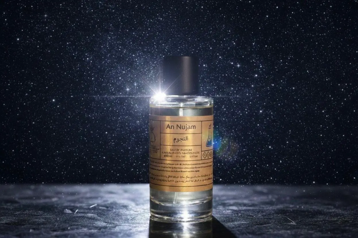(النجوم): مثل كوكبة في سماء عمان، النجوم يحكي حكاية الإرشاد الفلكي والحكمة. مستوحى من الملاحة الفلكية اللي قادت الملاحين العمانيين عبر البحار، هذا العطر يجسد روح المغامرة والمهارة في التوجيه اللي عرفت عمان به.